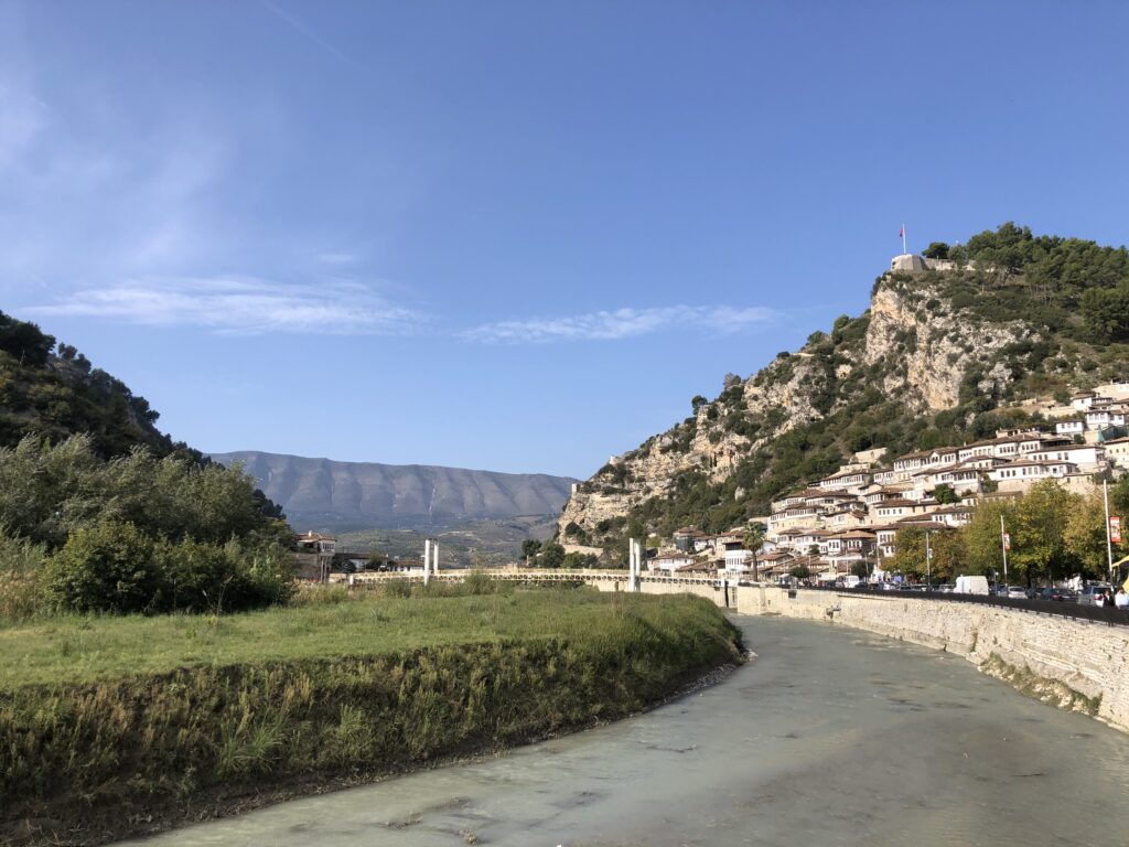 Berat è una delle città più singolari d’Albania, con le sue case bianche dalle grandi finestre e i tetti scuri a fare da contraltare al biancore uniforme delle facciate. Il fiume Osum si fa strada sinuoso fra i due quartieri che si dispiegano ai suoi lati, quello di Gorica, sul lato sinistro, e quello di Mangalem sul lato destro.