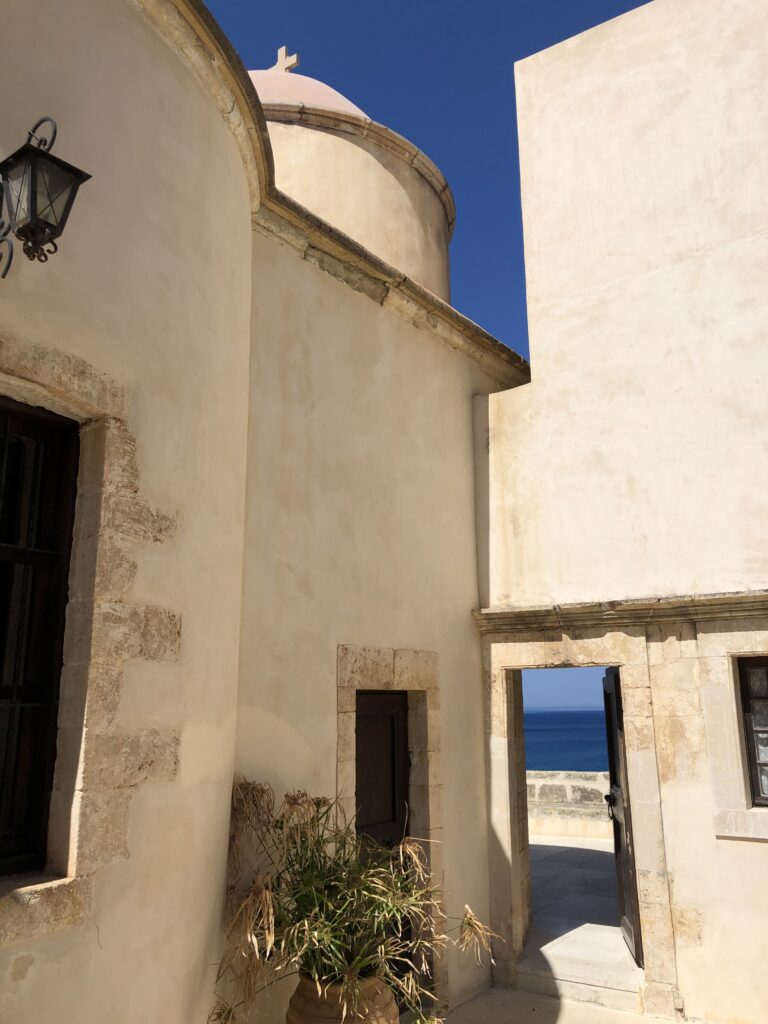 Il monastero, che si trova in una posizione di rara bellezza sulla riva del mare, possiede una bella collezione di icone post-bizantine e di reliquie. Fu danneggiato anche dai nazisti durante la seconda guerra mondiale, diventando uno dei simboli della resistenza cretese.