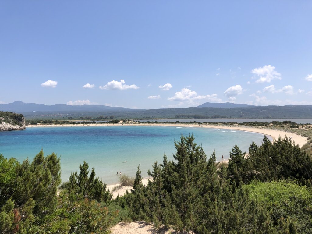Risalendo a nord di Pilos (Navarino), si possono incontrare altre mete naturalistiche molto interessanti. Una di queste è la grande baia di Voidokiliá, che si estende a ferro di cavallo davanti a una zona lagunare protetta. L’assenza di impianti turistici permanenti favorisce anche la presenza di aree di nidificazione per le tartarughe di mare, ma non impedisce un grande afflusso di turisti, richiamati dalla particolarità di questo angolo di mare.