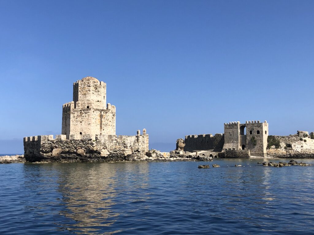Percorrendo una decina di chilometri a sud, si arriva a un’altra cittadina di grande fascino, raccolta sul mare attorno alla grande mole della fortezza veneziana del XIII secolo. Si tratta di Modone (Methoni per i greci). Le mura esterne che subirono rifacimenti nei secoli successivi, risultano ancora intatte e imponenti.