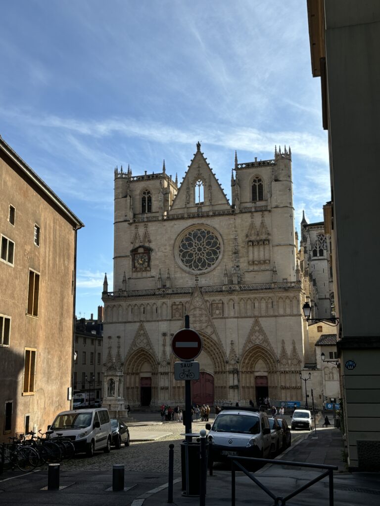 Nella parte bassa si trova la Cattedrale di Lione, St-Jean, con la sua tipica facciata gotica caratterizzata da un elegante e ampio rosone. Abbastanza spoglio l’interno, illuminato da belle vetrate e abbellito da alcune sculture e da un antico orologio astronomico.