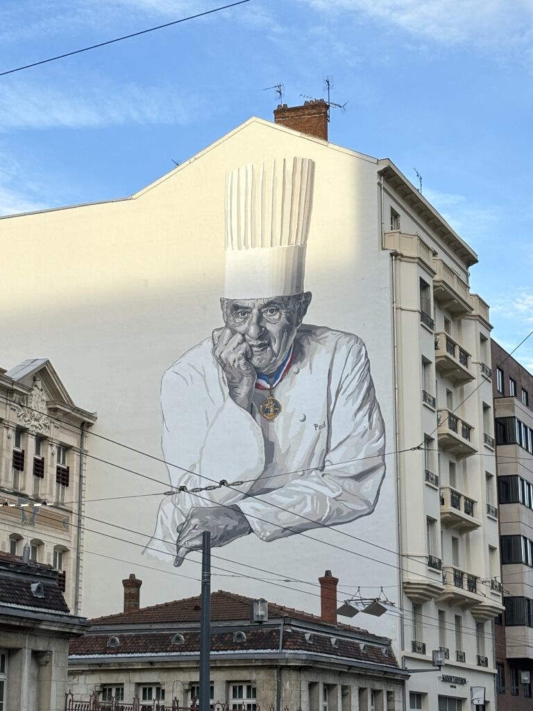 Un bellissimo murales che raffigura Paul Bocuse col cappello da cuoco, ci accoglie proprio di fronte all’ingresso del mercato, che offre una vastissima scelta di prodotti regionali, oltre a piccoli locali dove consumare pesce e frutti di mare accompagnati da un buon vino, oppure assortimenti di salumi e formaggi, dolci e altre specialità.