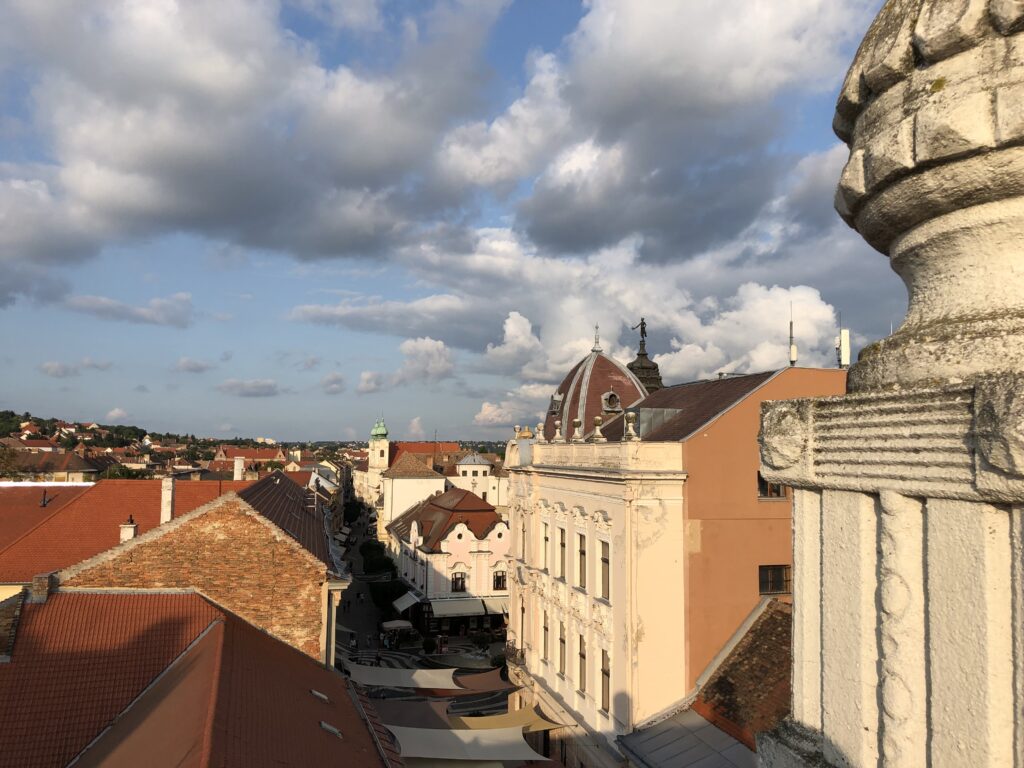 Il cuore della città è rappresentato dalla Széchenyi tér, la piazza principale in cui convergono le strade più importanti del compatto centro storico, ed è il luogo che esprime meglio l’atmosfera austroungarica che si doveva respirare ancora a inizio Novecento. Le architetture di tutti i palazzi, infatti, spaziano fra il barocco del tardo Settecento e Ottocento e l’ecclettismo liberty di inizio Novecento.