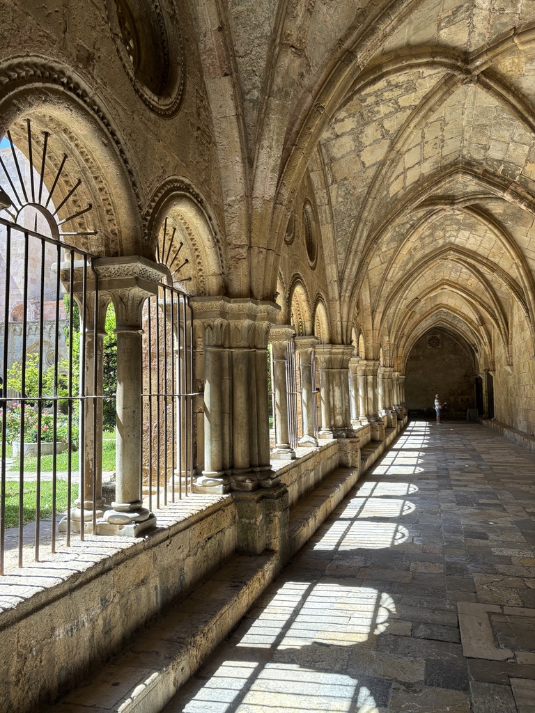 Di altrettanto fascino è l’ampio chiostro romanico-gotico, circondato da colonnine binate sormontate da capitelli di eccezionale esecuzione.