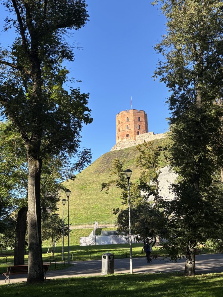 Tornando alla piazza della Cattedrale, si può scegliere di salire sulla collina di Gediminas dove si trova la torre omonima, che faceva parte della fortezza principale della città. Dalla collina si gode una vista panoramica sulla parte vecchia e nuova della città e sul corso del fiume Neris.
