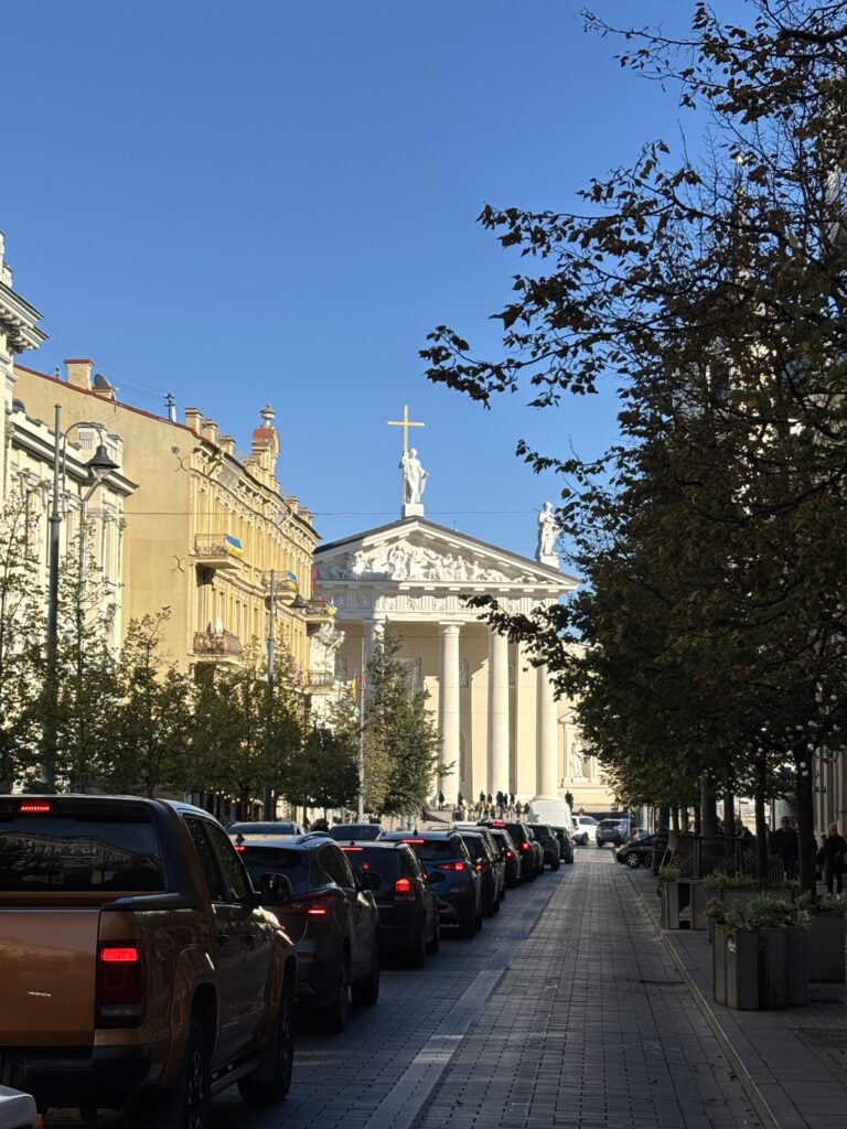 Il viale Gedimino che si diparte dalla Cattedrale verso l’esterno della città è il vero e proprio bulevard cittadino, con i negozi di lusso, le istituzioni, i teatri, le piazze e i giardini. Questa è la strada che più ci ricorda la funzione di capitale di Vilnius che altrimenti appare una tranquilla e ordinata città nordica.
