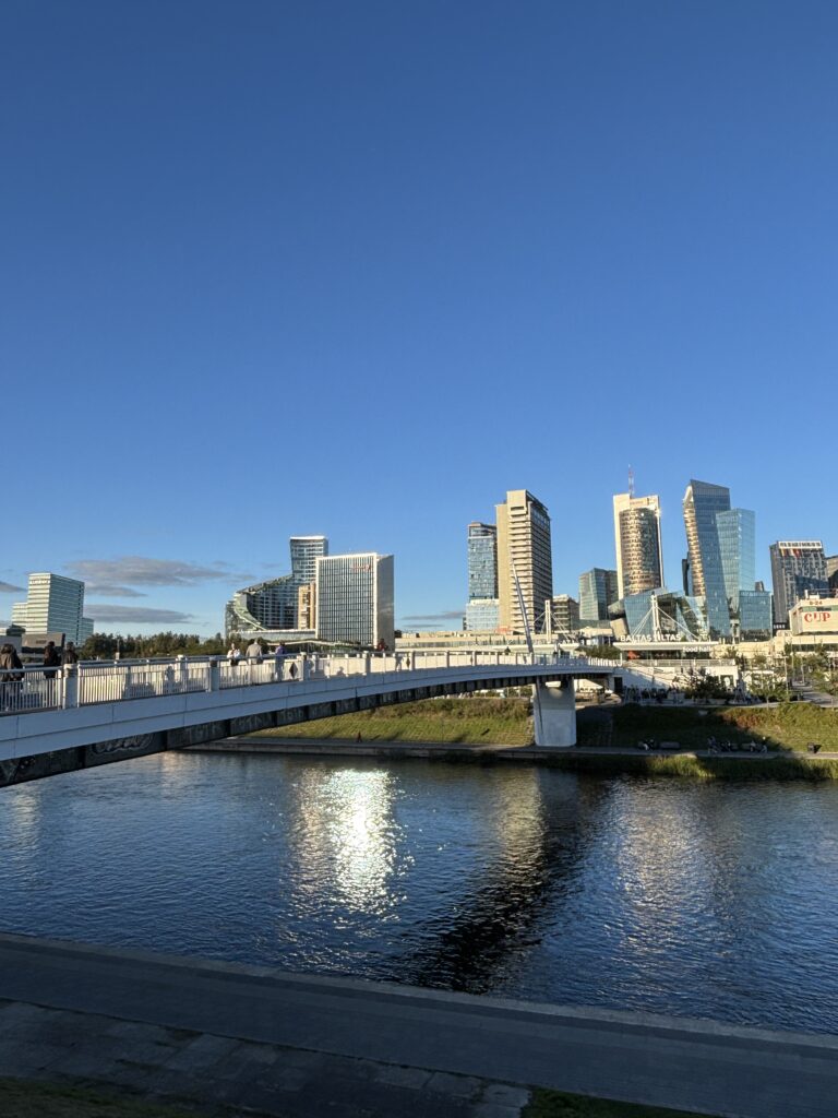 Il turista che si volesse spingere fino alle sponde del fiume Neris, troverebbe, attraversato il ponte, la città moderna, fatta di centri commerciali, alberghi, uffici, espressione della Vilnius che sta facendo i suoi passi di piccola capitale nel nuovo millennio.