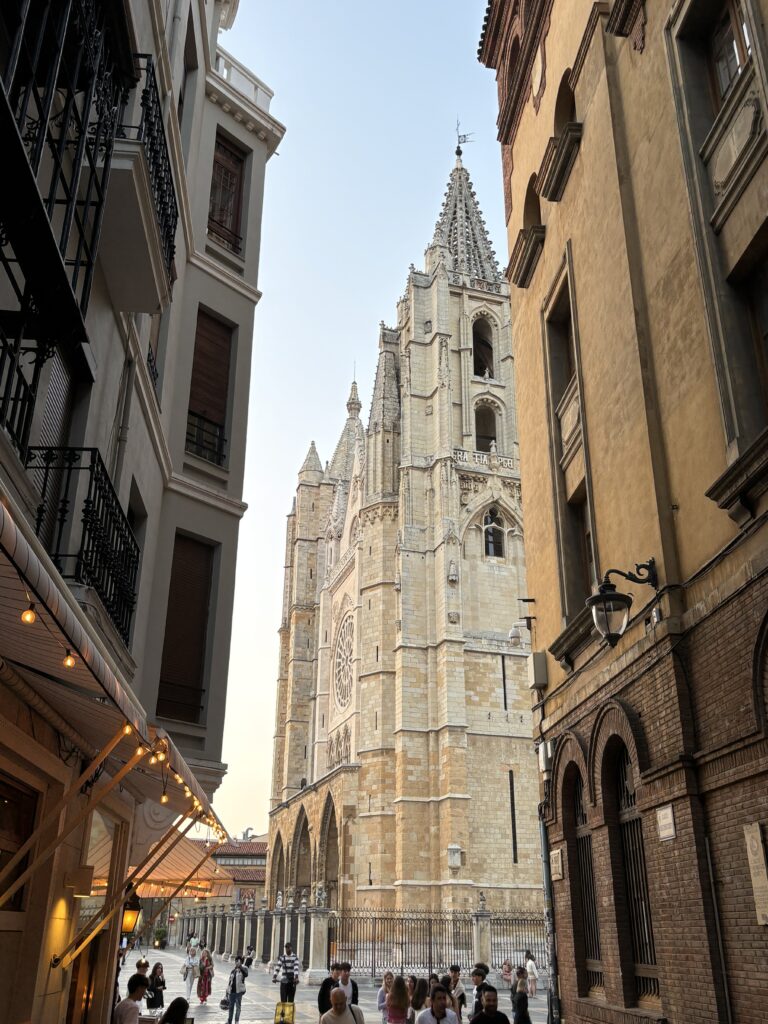 León è a misura d’uomo, appena sopra i 100.000 abitanti, ed è ricca di locali che si trovano negli stretti vicoli medievali del centro. Queste strade ospitavano molte locande anche nei secoli passati. Il monumento più importante che svetta su tutta la città è la sontuosa cattedrale gotica costruita dal Duecento al Quattrocento e che già in passato impressionava così tanto i visitatori e i pellegrini da essere soprannominata Pulchra Leonina, cioè la bella di León.